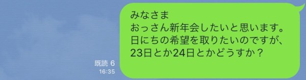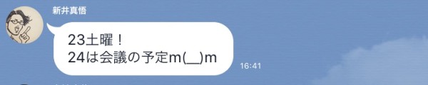メンバーの新井さんからのLINEでした